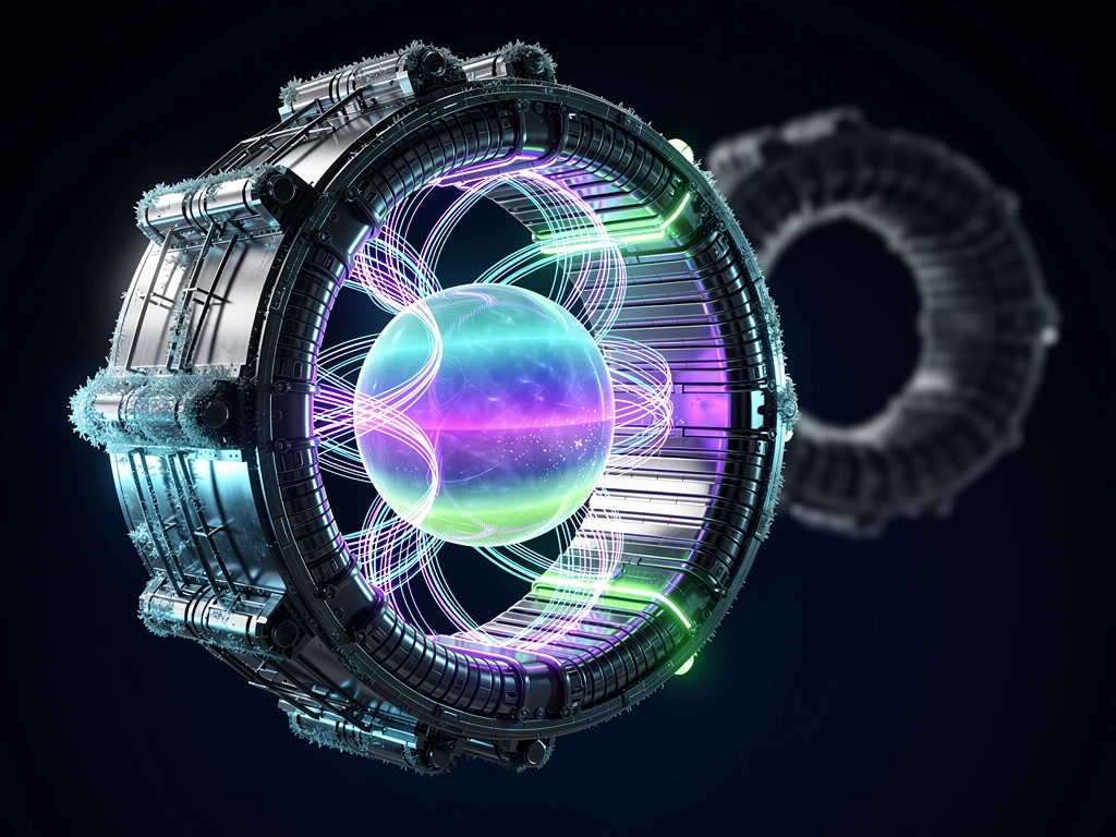 A tokamak is a magnetic donut, technically a torus, with a strong external toroidal field running the long way around the ring and a weaker poloidal field running the short way around. The combination produces helical field lines that wrap the plasma into a stable shape.